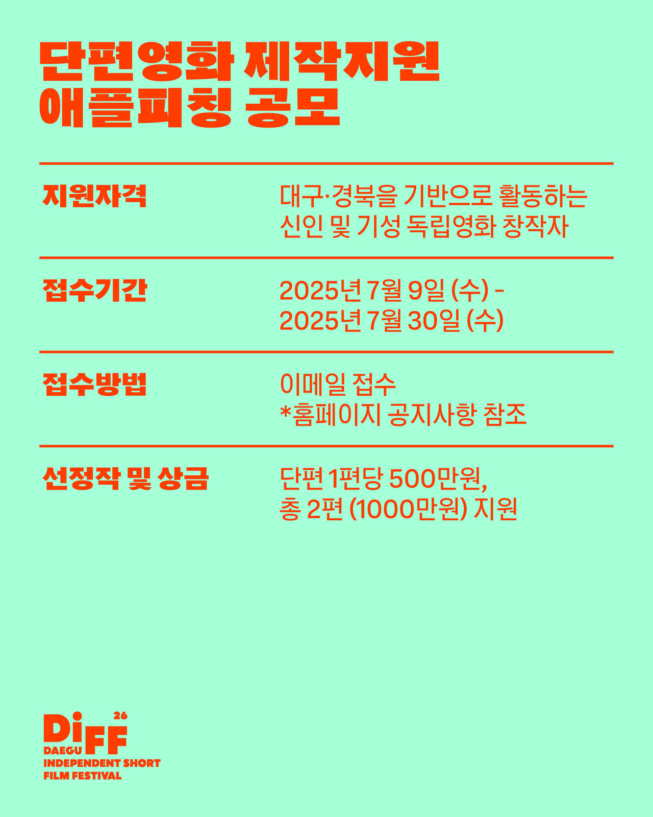 ∙ 최종발표: 2025년 8월 25일 (월) 대구단편영화제 폐막식